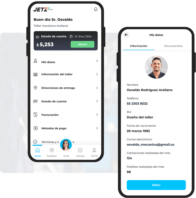 The design process focused on understanding workshop workflows, purchasing behaviors and communication needs, translating insights into a clear and efficient mobile experience.